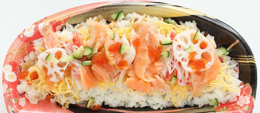 В превод като „разпръснати суши“, е купа ориз, гарниран с различни съставки, с популярни гарнитури, включително парчета сьомга, калмари, краставици, настърган омлет и варени скариди. Той е подобен на кайзендон (японска купа с ориз, гарнирана с голямо количество морски дарове), като основната разлика е, че чирашизуши използва оцетен суши ориз, докато кайсендън използва бял ориз на пара. Можете лесно да намерите chirashizushi в цяла Япония, тъй като тя е широко достъпна в магазини за супермаркети и кортове за хранителни стоки. Често се включва като функция за кутия с бенто или се ползва като самостоятелна храна, имайки предвид голямото разнообразие от съставки. Неговият декоративен, украсен външен вид го прави популярен за сервиране на празнични поводи.