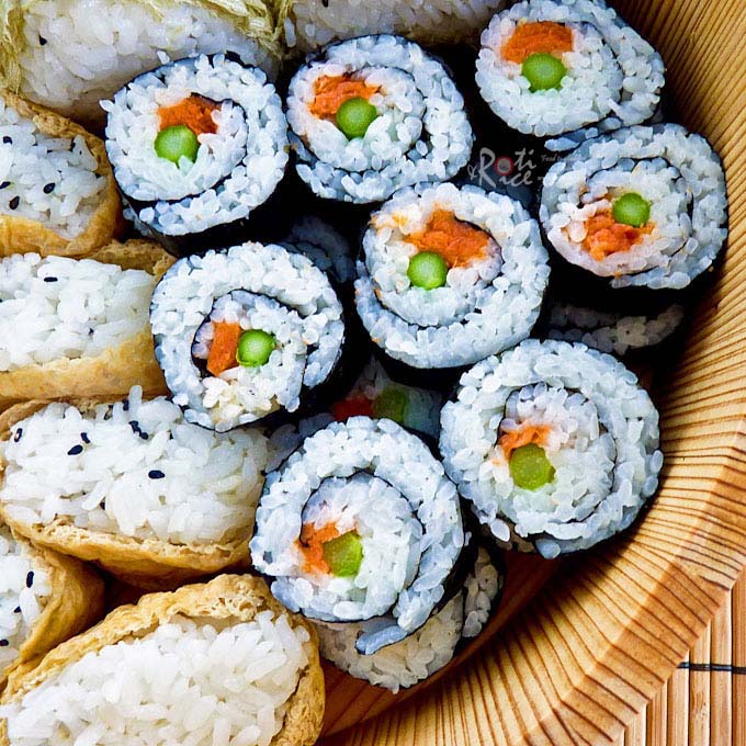 Известен също като „norimaki“. Оризът и съставките внимателно се разточват в лист нори морски водорасли, които след това се нарязват на по-малки парчета. Смята се, че е възникнал в началото на 1700 г. Скоро след изобретяването на нори листове с подобна техника, използвана за направата на хартия. Името norimaki е съставено от две японски думи. „Maki“, което означава да се търкаля, и „нори“, отнасящи се до препечения лист нори морски водорасли, използван за увиване на съставките.