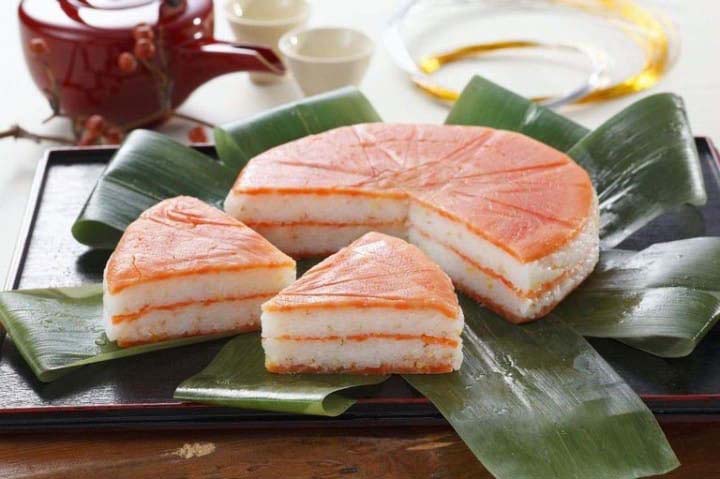 Пресовано суши, известен още като хакозуши (боксирано суши). Поразително оформен стил на суши с произход от Осака. Това разнообразие се прави чрез пресоване на съставки в правоъгълна кутия „oshiwaku“. След което се наслоява с гарнитура и се нарязва суши на кокетни ъглови форми като правоъгълници, триъгълници или малки квадратчета. В гарнитурата се включват риба като скумрия, а също може да бъде декоративно слоена с ядливи листа, като бамбук. Топингите могат да бъдат поставени в различни аранжировки, като диагонално или с цяла риба от край до край, а този уникален дисплей прави oshizushi популярен избор за кутии и подаръци с бенто.